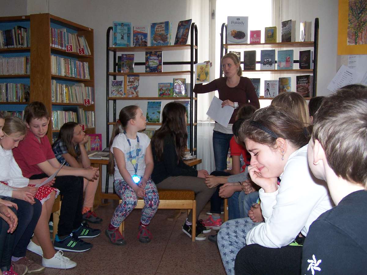 Ve čtvrtek čtvrtou hodinu jsme se vydali do knihovny. Povídali jsme si na téma komiksu. Dozvěděli jsme se něco o japonských, anglických, ale i českých komiksech. Já jsem třeba nevěděla, že prvním komiksem bylo „žluté dítě“. Na konci jsme si povídali o Rychlých šípech. Návštěva knihovny se mi velmi líbila, protože jsem se dozvěděla nové věci. (Tereza Bubeníková)