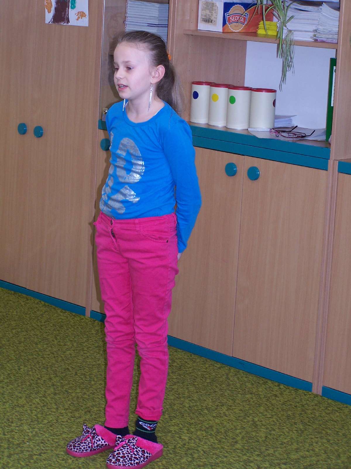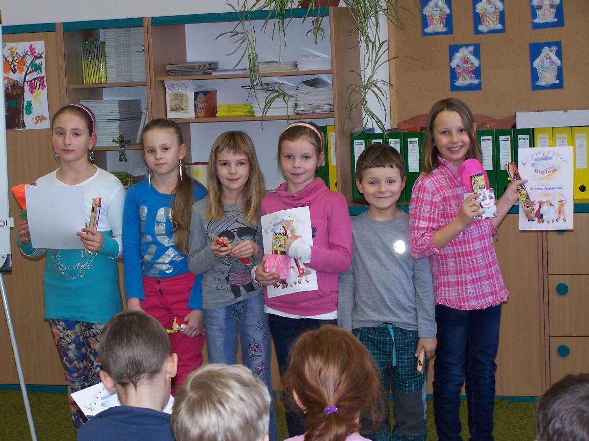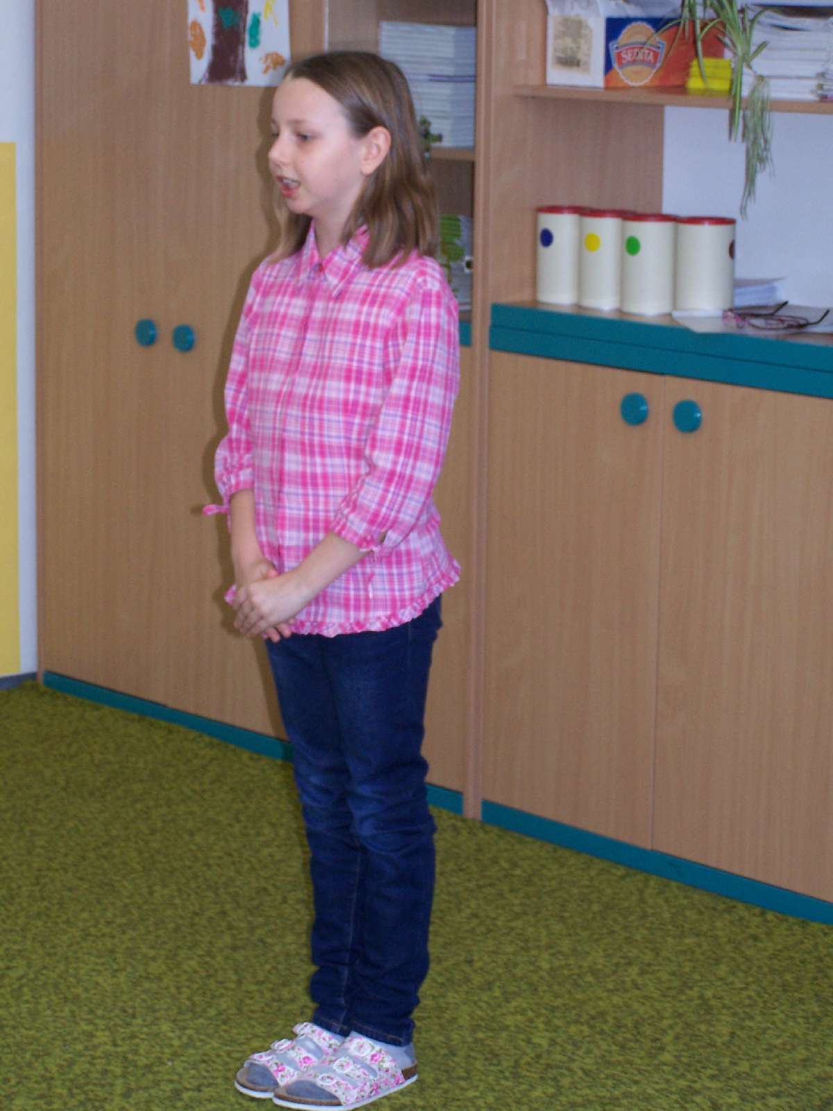 Opět po roce se uskutečnila recitační soutěž žáků 1. stupně. 11. února proběhlo třídní kolo. Všichni žáci odrecitovali básničku dle svého výběru. Zvítězila Kateřina Hochmanová s básničkou Zlatá rybka od Miloše Kratochvíla. Druhé místo obsadila Tereza Bubeníková. Přednesla báseň Vzpomínka na pravěké doby aneb Zlatý věk od Michala Černíka. Třetí byla Kateřina Coufalová s básničkou Mateřídouška od Jaroslava Seiferta. V pátek 13. února se uskutečnilo školní kolo. V kategorii 2. a 3. tříd zvítězila Kateřina Hochmanová, druhá byla Tereza Bubeníková, třetí místo připadlo Nikole Ruberové ze 2.A.