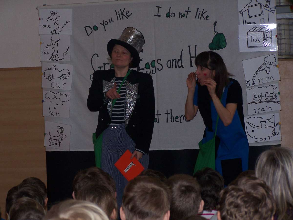 Ve středu 12. února jsme v tělocvičně školy zhlédli pohádku „Green Eggs and Ham“. Pohádka byla sice v angličtině, ale herečky děti hravou formou vtáhly do děje. Děti se naučily některá anglická slovíčka a seznámily se tak s jazykem, který se od třetí třídy budou učit.