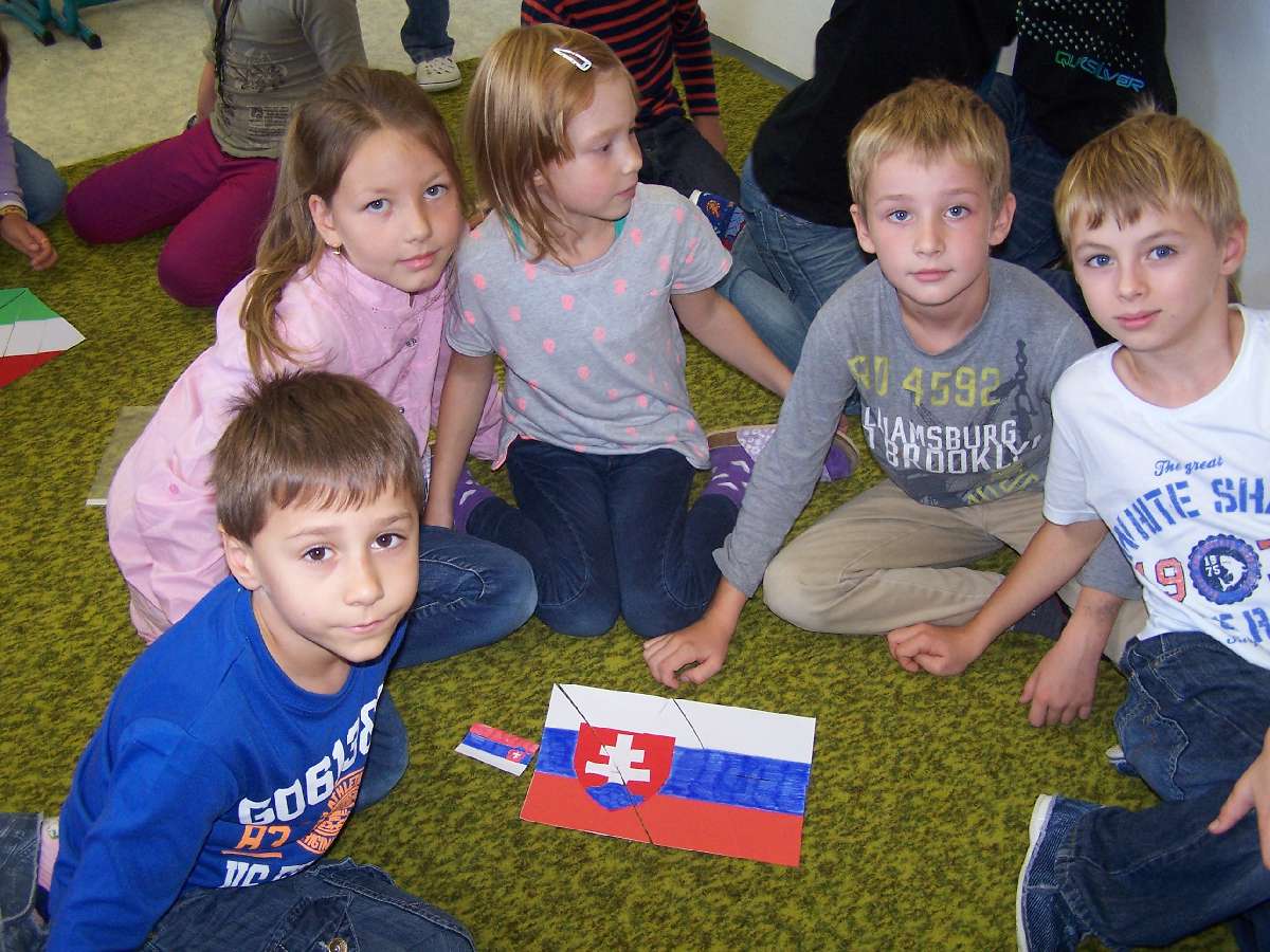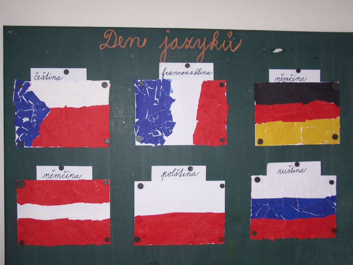 V pátek 27. září proběhl na naší škole projektový den - Den jazyků. Již začátkem září jsme si v hodinách češtiny vysvětlovali, co je to mateřský jazyk. Povídali jsme si, kde všude jsme o prázdninách cestovali a jakými jazyky se ve světě mluví. Toto učivo jsme rozvíjeli právě na projektovém dnu. Ve skupinách jsme vytvářeli vlajky států a říkali jsme si, jakými jazyky se v nich mluví; skládali jsme puzzle vlajek států. Rovněž jsme si zahráli hry, ve kterých skupiny soutěžily ve znalostech češtiny - našeho mateřského jazyka.