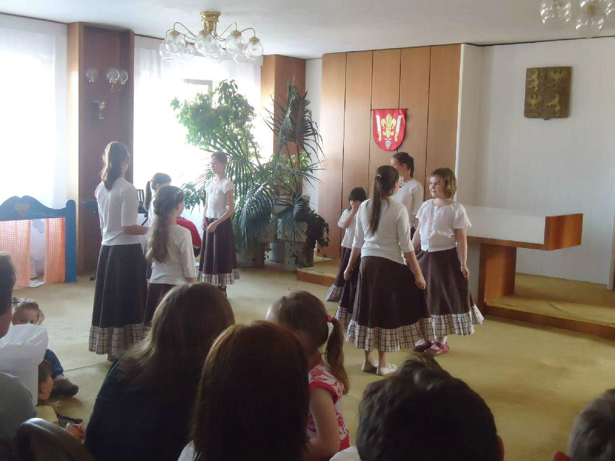 Ve čtvrtek 9. května vpodvečer proběhlo v obřadní síni obecní úřadu vystoupení žáků základní školy při příležitosti nedělního svátku Dne matek. Z první třídy vystoupilo několik žáků. David Fridrich, Tereza Bubeníková a Kateřina Hochmanová zarecitovali básničky. Scénku o nemocné panence zahrály Kateřina Coufalová a Melanie Kurková. Melanie spolu se Zuzanou Škamradovou zatancovaly rovněž s country skupinou taneček.