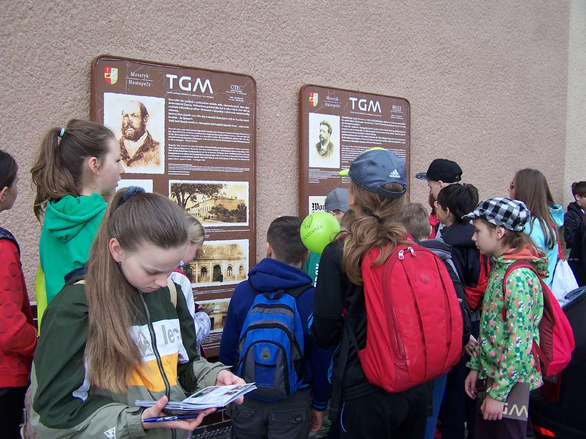 V pátek 5. 5. 2017 jsme vyrazili vlakem do Hustopečí. Když jsme tam přijeli, tak jsme šli po šesti informačních tabulích. Na každé z nich byla nějaká zajímavost o T. G. Masarykovi nebo o jeho rodině. Stezka končila na hřbitově, kde jsou pohřbeni Masarykovi rodiče. Nakonec jsme vyběhli na rozhlednu. Výlet se mi moc líbil. Dozvěděla jsem se spoustu nového. (Kateřina Hochmanová)